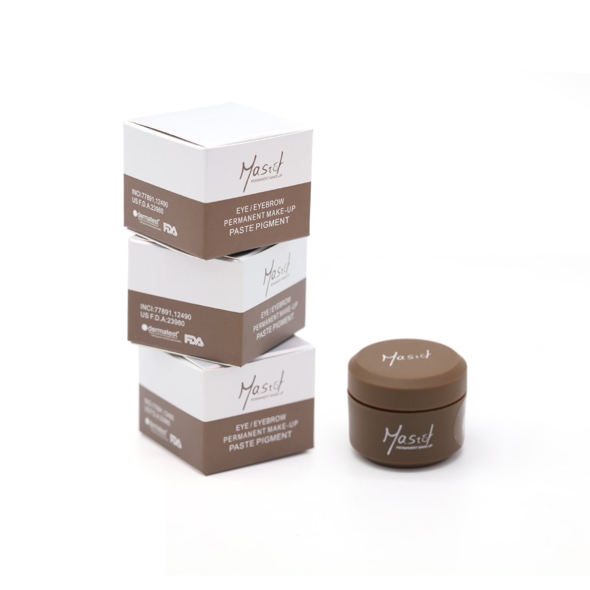 Pigmento 100% diseñado para piel latina, pues tienen una gran fijación en pieles grasas las cuales son las más complicadas a la hora de trabajar. Ideal para clientes de cabello castaño oscuro con fototipo de piel 3- 4 según la escala Fitzpatrick. Libre de metales pesados.